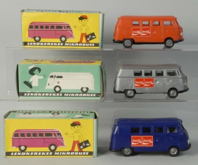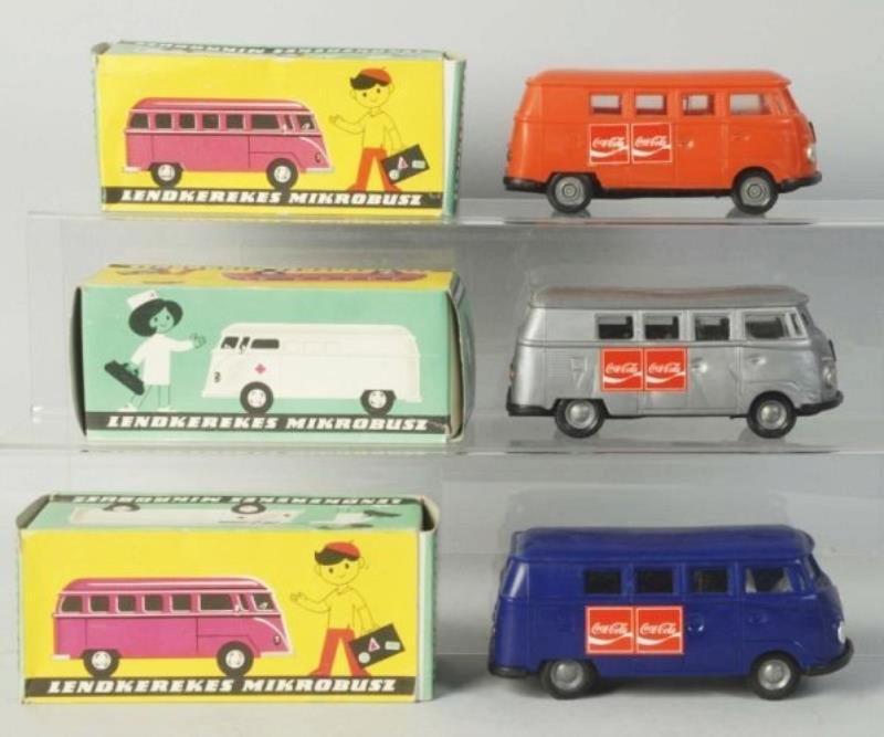 Description Made by T.T. in Japan. Includes Coca-Cola and Pepsi-Cola. No wear to toys but minor wear to box. Condition (9.0 - 9.5, Near Mint). Size All: 10 - 1/2" L.