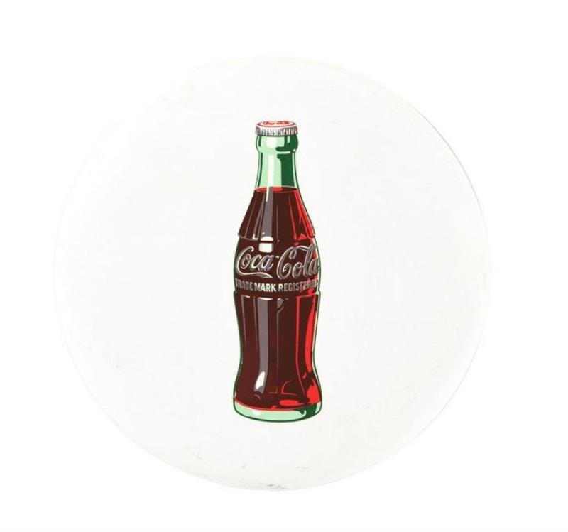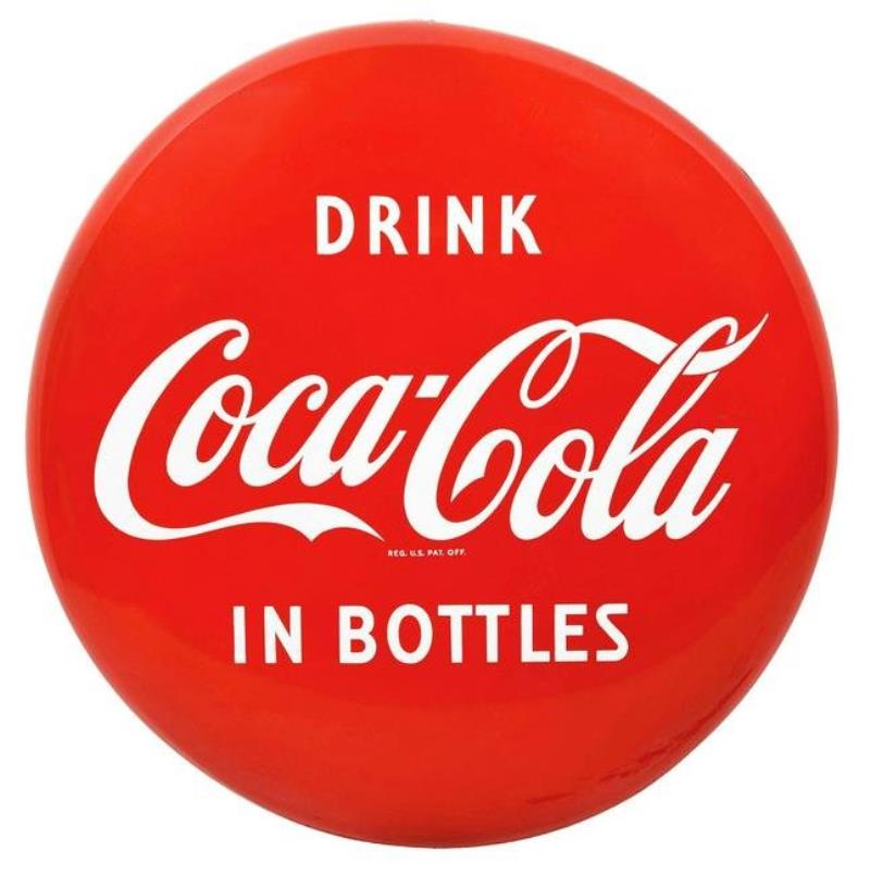 DRINK COCA COLA IN BOTTLES PORCELAIN 36" BUTTON SIGN.