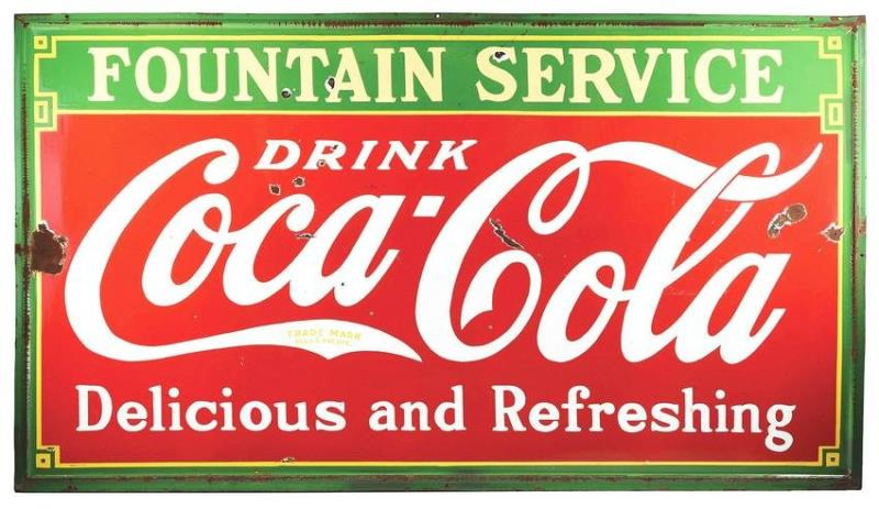 COCA COLA FOUNTAIN SERVICE PORCELAIN SIGN W/ SELF