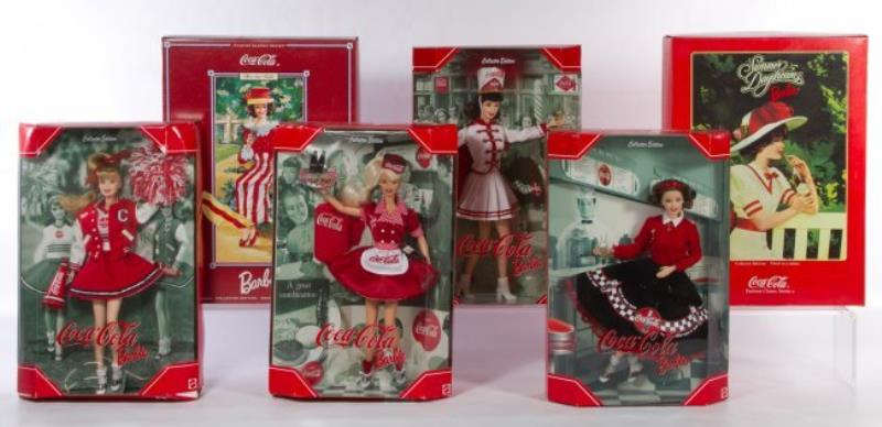 Coca-Cola Barbie Assortment Six boxed dolls including 'After the Walk,' 'Summer Daydreams,' and Coca Cola Barbie dolls #28376, #53974, #24637 and #22831 Height: 14.00 inches (tallest box)Category: Toys and Dolls > Contemporary Dolls Shipping Status: 3rd Party Shipping; the shipping…