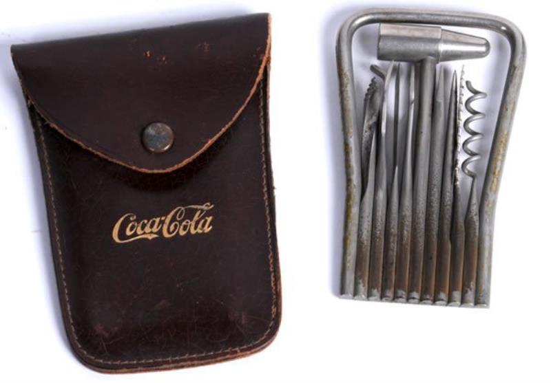 1940S COCA-COLA SMALL FOLDING TOOL KIT AND LEATHER