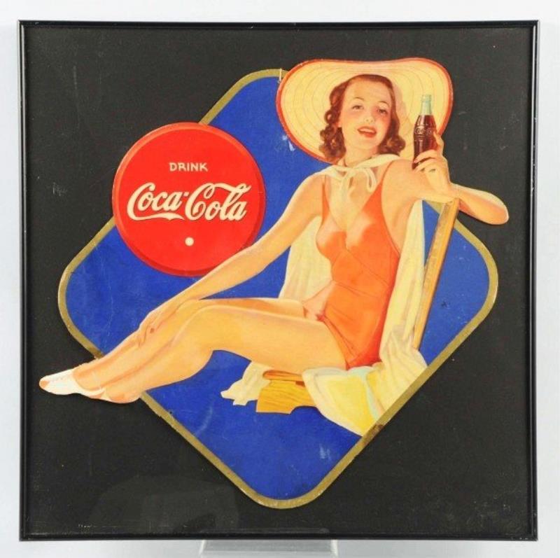 Embossed Cardboard over Tin Coca-Cola Sign.