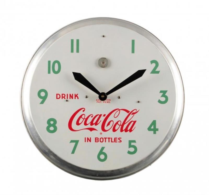 CIRCA 1948 COCA-COLA ROCKING BOTTLE NEON CLOCK