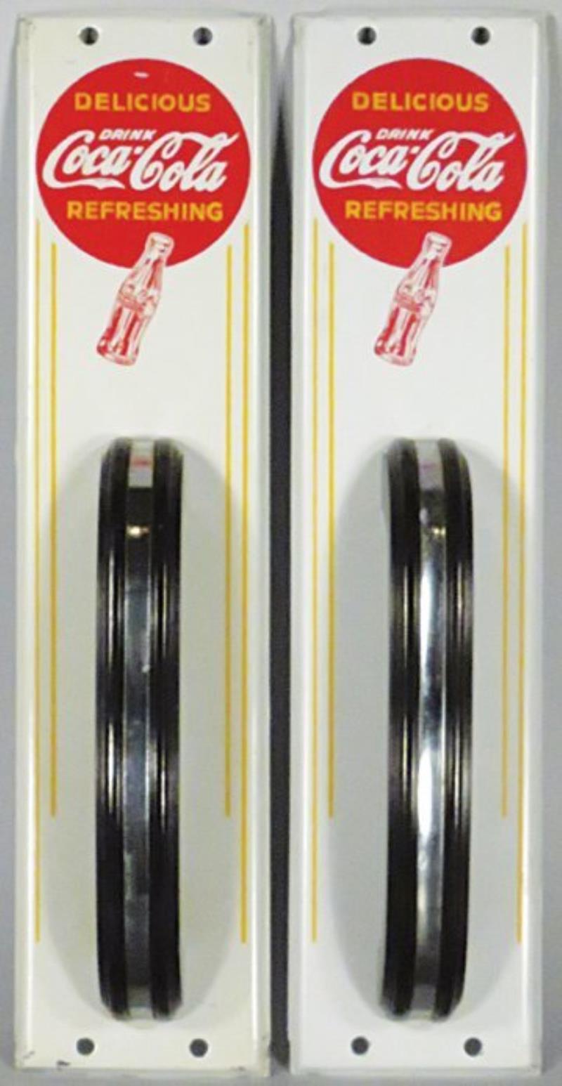 1930's-40's Coca Cola Metal Door Pulls. One has a few light scratches otherwise both in near mint condition. 2 3/4 X 11 3/4 inches.