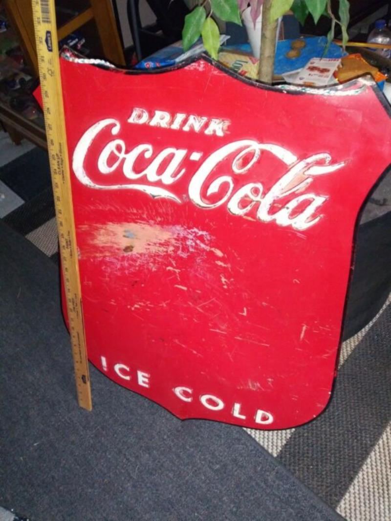 Vintage 1940 50s Coca Cola Advertising Sign Shield Route 66 Not Flimsy Original From Large Coca Cola Machine side Panel. I found this sign today definitely shows its age weighs approximately 10 lb and it is not…