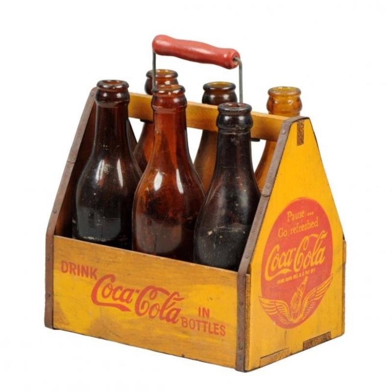 Coca-Cola Bottle Carrier and 5 Rare Amber Bottles