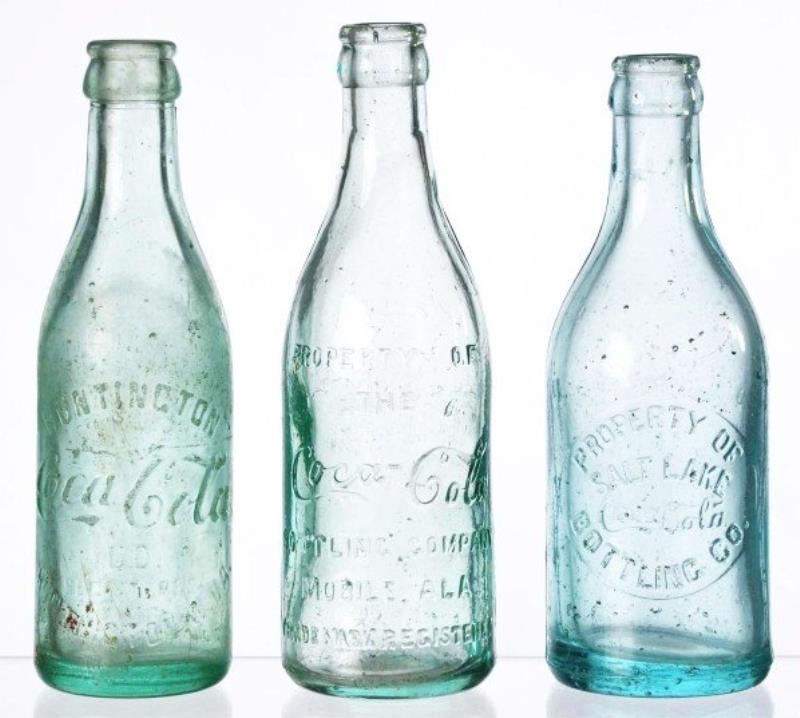 Circa 1903 to 1916. The Chattanooga, TN bottle has its original paper label with some rubs and wear, the Louisville, KY curved arrow bottle is nice, clean, and clear with only minor marks, the Knoxville, TN straight arrow bottle is…