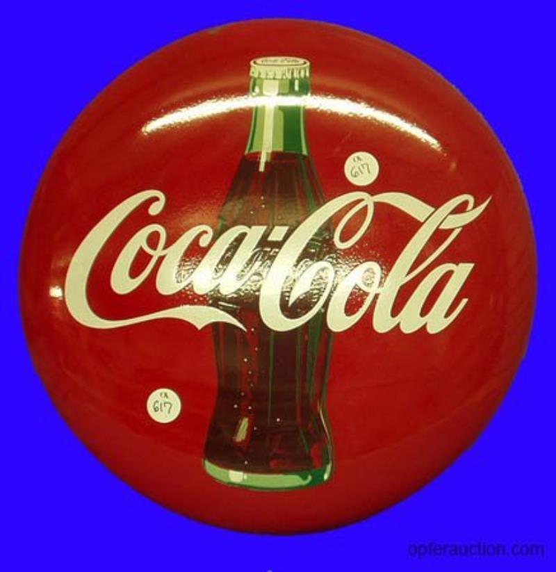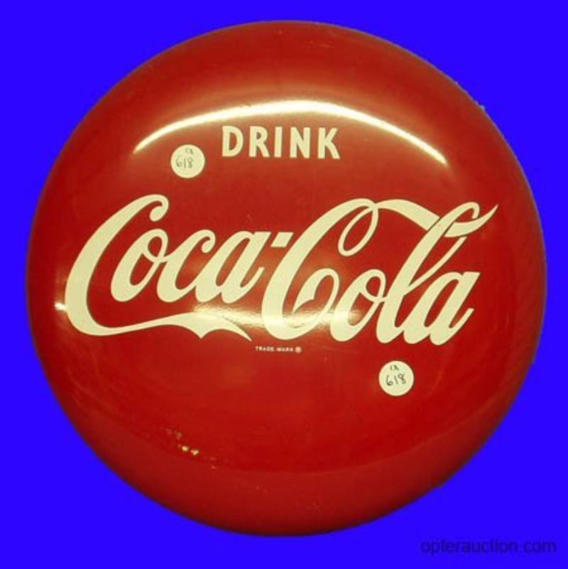 Vintage 1950s 12” Drink Coca Cola Button Soda Pop Advertising Painted Metal