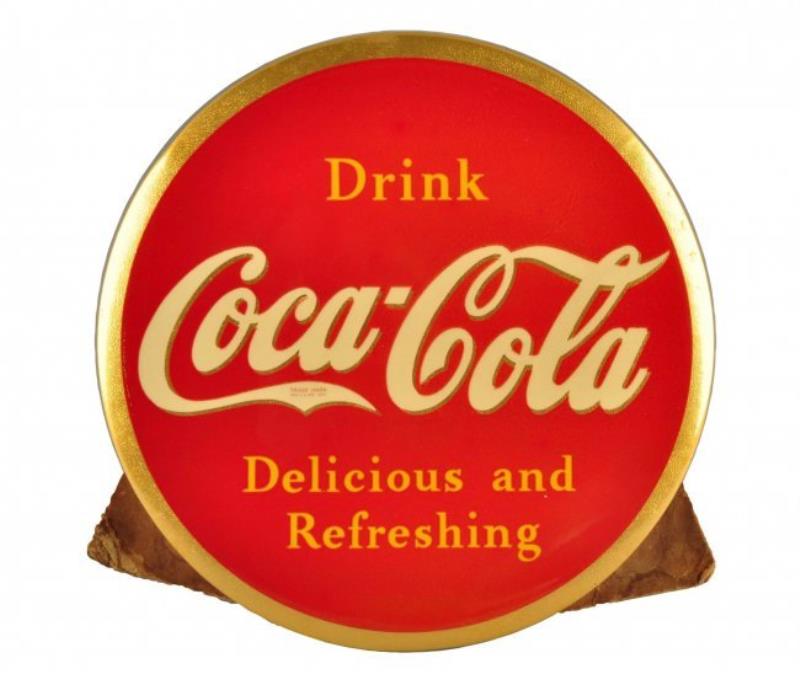 Coca Cola Celluloid Over Cardboard Button Sign