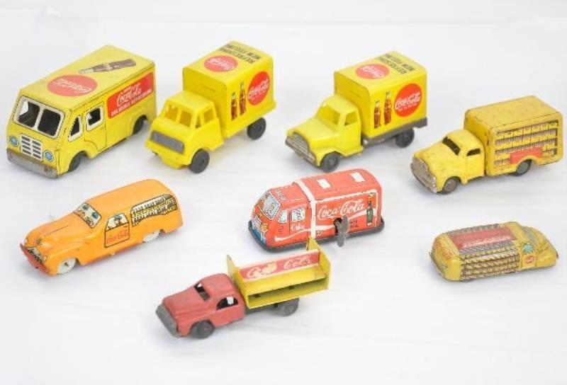 8 Small Tin Coca-Cola Trucks