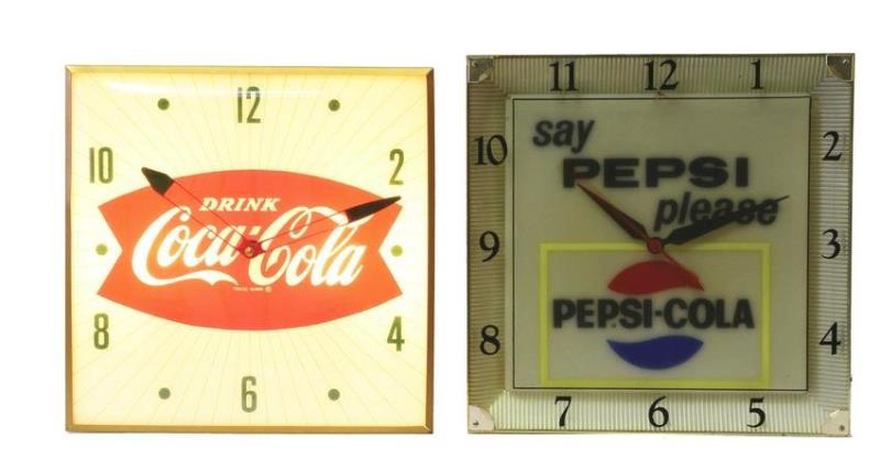 COCA-COLA AND PEPSI-COLA CLOCKS.
