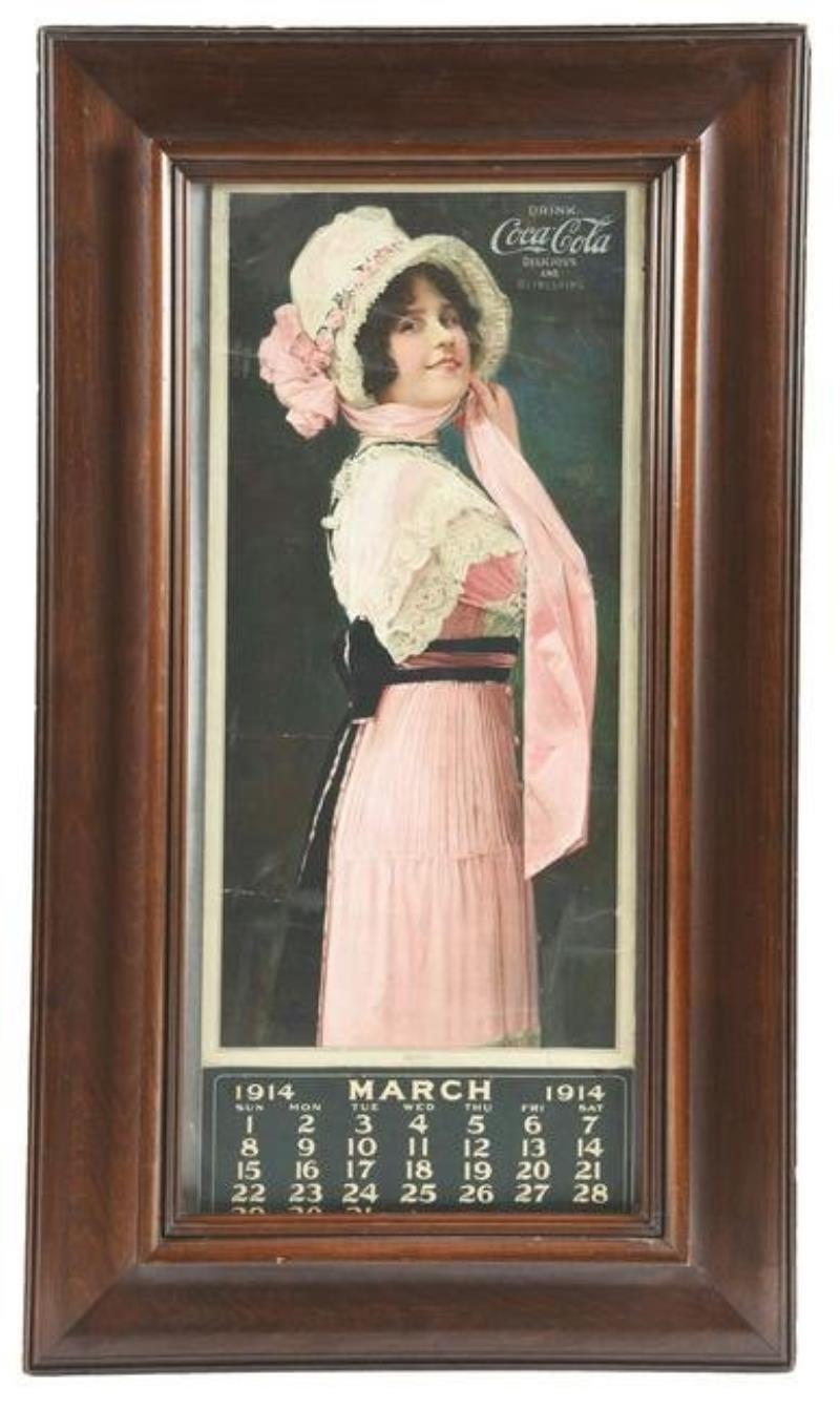 MARCH 1914 COCA-COLA FRAMED CALENDAR ADVERTISMENT.