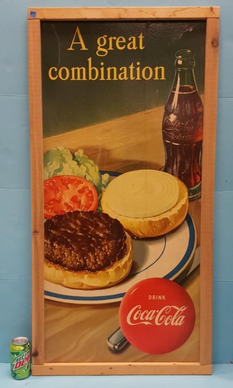23.5" x 46" Original framed cardboard sign with scuffs, a few bends, and a tear. Please read and understand the payment and shipping terms for this auction prior to placing bids.