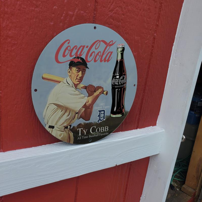 Vintage 1905 Coca-Cola Carbonated Soft Drink 'Ty Cobb' Porcelain Gas & Oil Sign