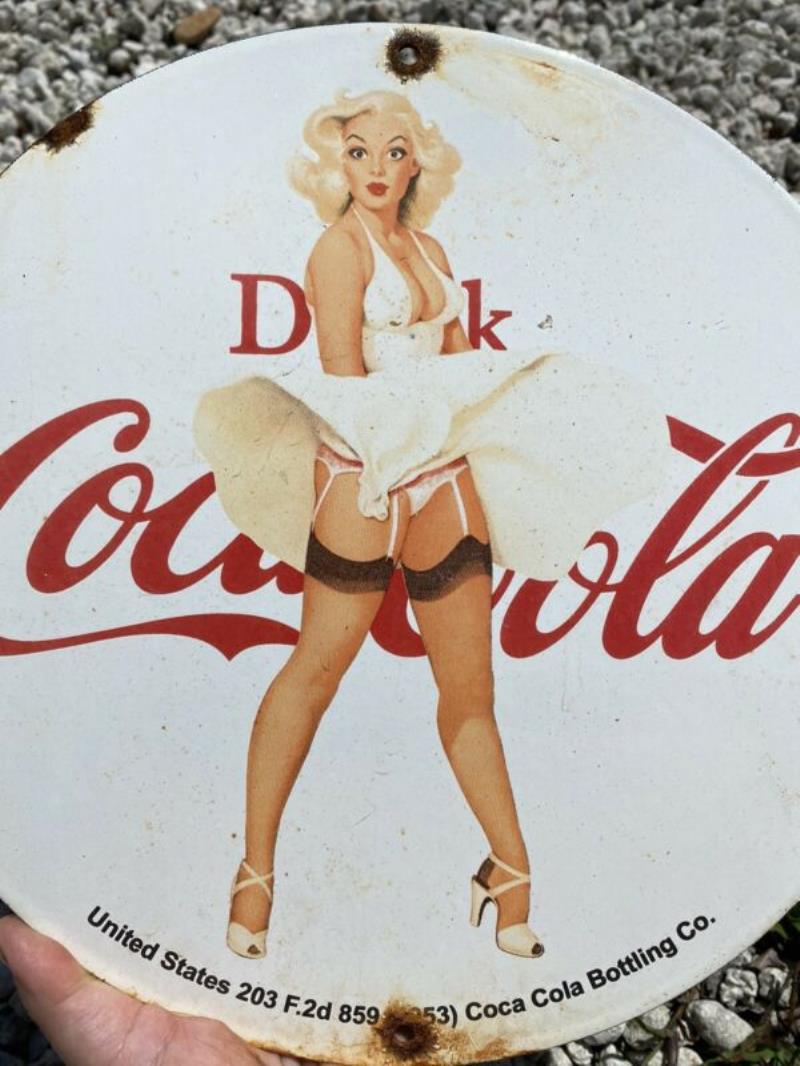 Vintage Coca Cola Porcelain RARE Marylyn Monroe Garage Coke Soda Gas Oil Sign