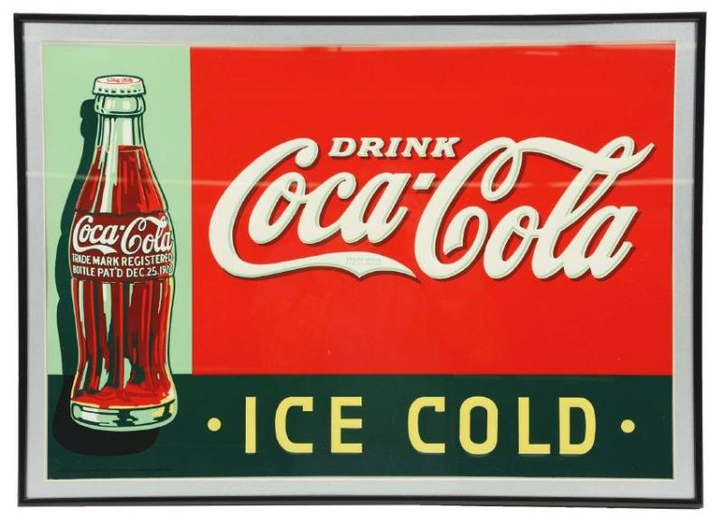 Coca-Cola Cardboard Ice Cold Advertising Sign.