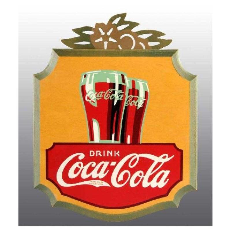 This is a wooden diecut sign. It has some discoloration in the red paint and in the Coca-Cola script, otherwise it displays well. Condition(Very Good).Dimensions12-1/2" x 9-1/2".