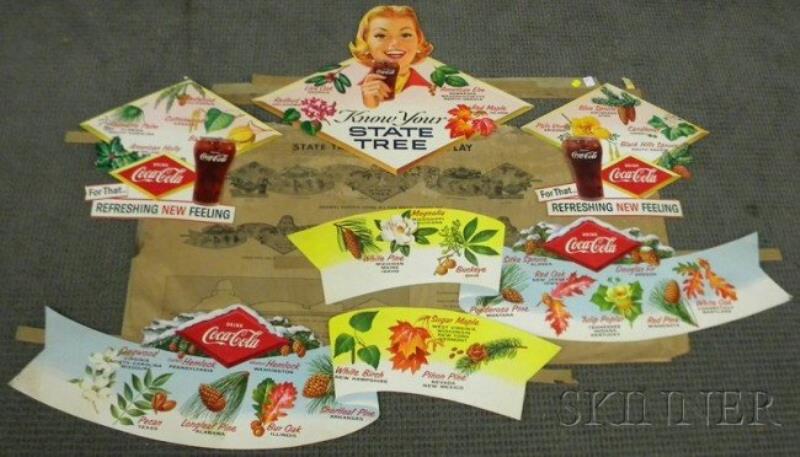 Cardboard Coca-Cola state tree festoon, late 1950's, five sections, 20 1/2'' h., 142'' w.