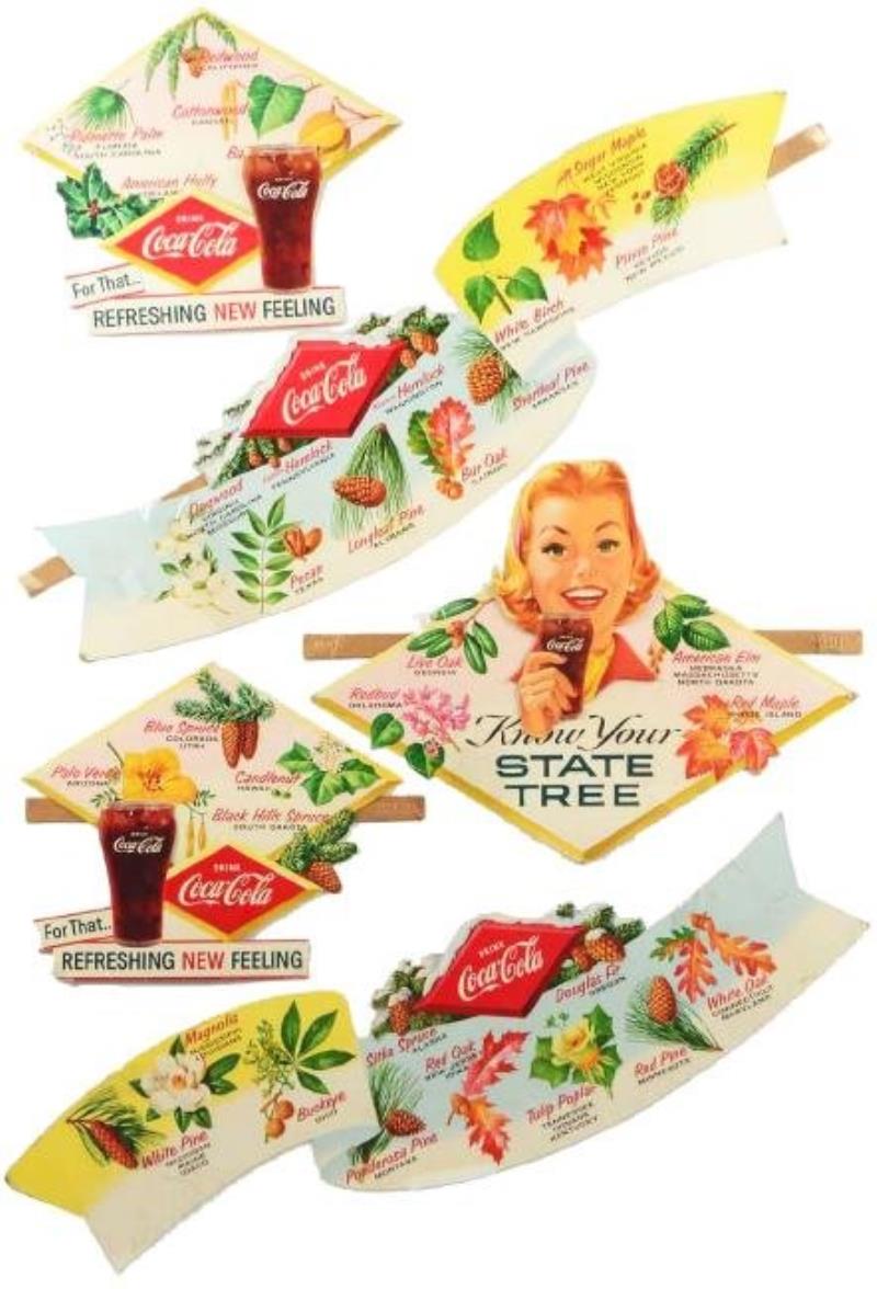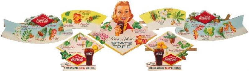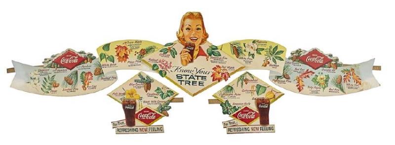Coca-Cola Know Your State Tree cardboard festoon, 5 total pcs., great for your soda fountain backbar, colorful & in VG condition, approx. 106"W.