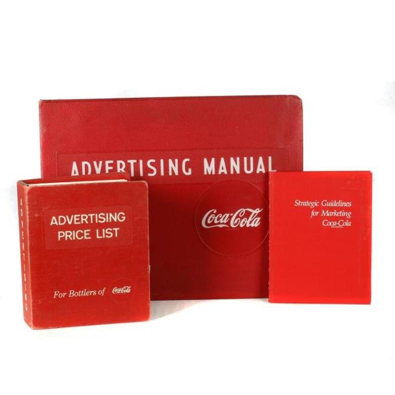 Including a 1948 Advertising manual, "A Plan to Make all Forms of Advertising Work Together for the Sale of Coca-Cola" bound, in large format with full color illustrations of advertising campaigns; together with a 1960's volume 'Advertising Price Lists for…