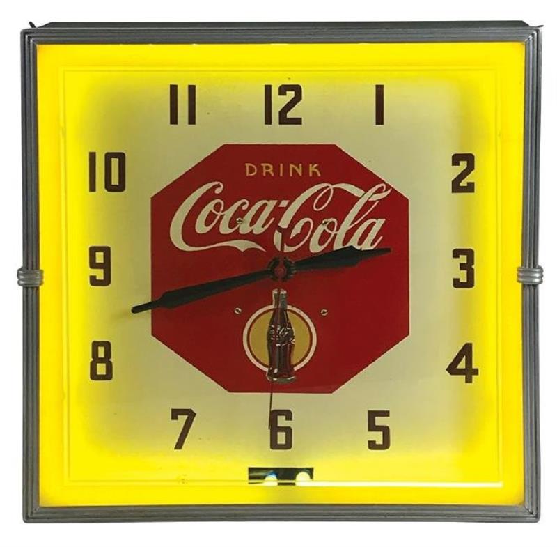 Coca-Cola neon clock, octagon, c.1940's clock w/replacement face, a great looking clock in Exc. restored cond., 18"H x 18"W.