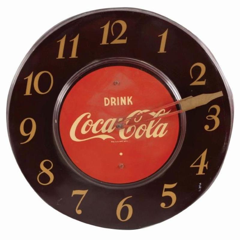 Large clock advertising Coca Cola. Crown tops round