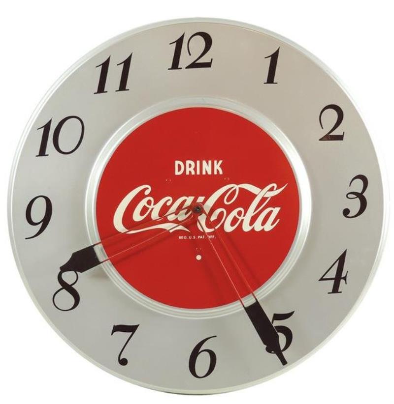 1930's Coca-Cola Round Tin Advertising Sign 45.5'' Diameter. A large colorful enameled tin signed marked ''A.A.W. 1-39'' at bottom. Hole at top center edge drilled for hanging. Some scattered light surface wear. Excellent strong colors with no fading.