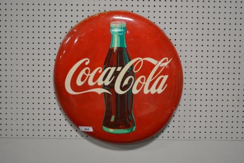Coca-Cola Button Bottle Sign- Tin 24" round