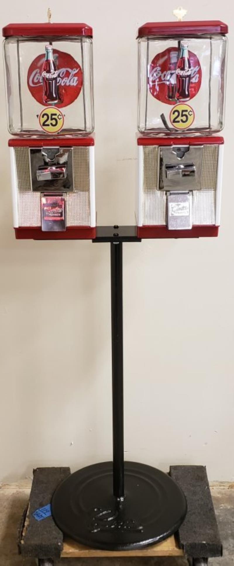 Excellent restoration on these two Curtis gumball machines on the original embossed Curtis cast iron base. The machines are super clean with Coca Cola theme. PLEASE READ & UNDERSTAND THE PAYMENT & SHIPPING TERMS FOR THIS AUCTION PRIOR TO PLACING…