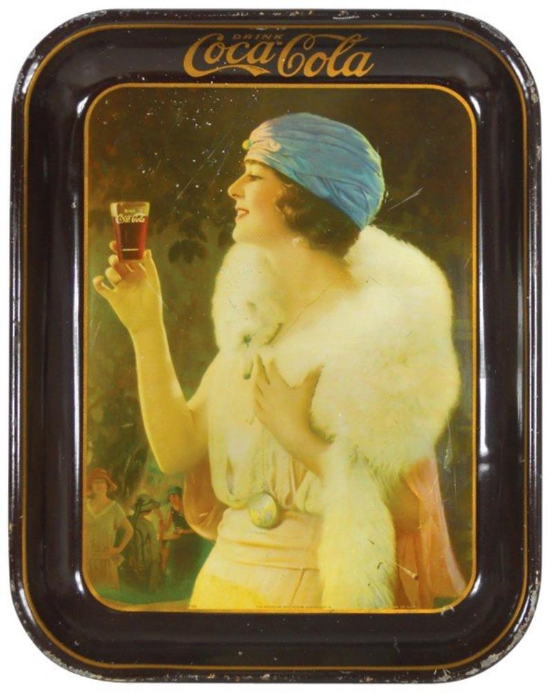 Coca-Cola serving tray, 1925 Girl w/Fox Stole, Go