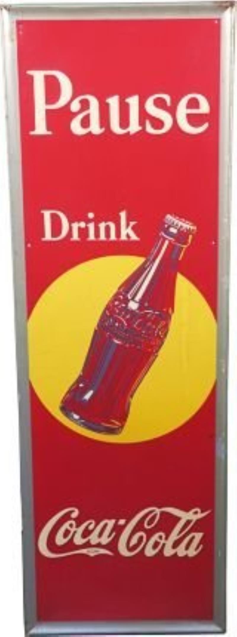 Coca Cola Single-Sided Metal Self-Framed Advertising Sign, “Pause, Drink Coca Cola” - 18” x 54”.