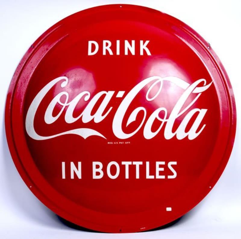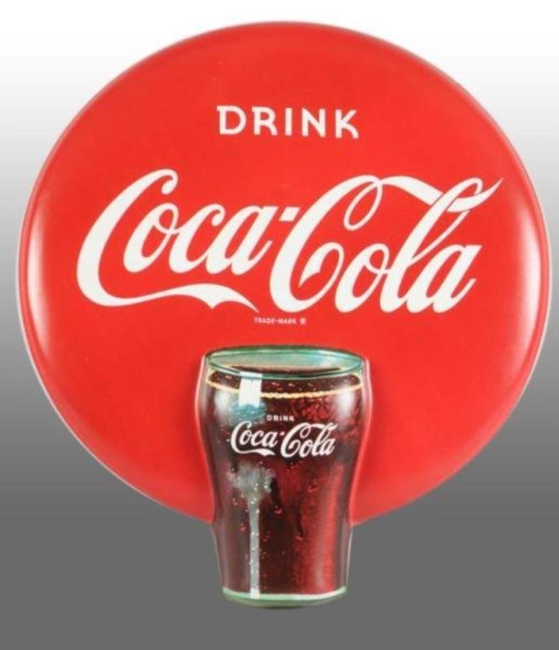 Coca Cola Single-Sided Metal Advertising Button Sign- 16” In Diameter.