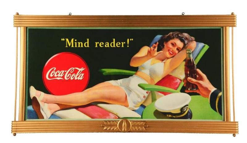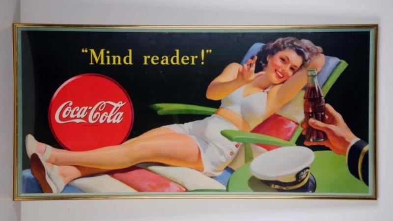 Coca-Cola Poster, "Mind Reader" Color Lithograph 28" x 56", Frame: 32" x 61" x 2" (MGIA9386)(WT)