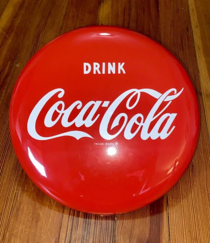 Vintage Coca-Cola “Drink Coca-Cola” Button Sign •Size: 12”x12”•Condition: Excellent condition- has some minor scratches •Feel free to check out the rest of my closet, I am selling more vintage Coke items!