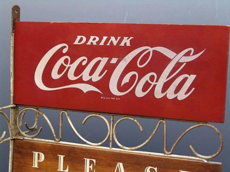 Coca-Cola sign, "Drink Coca-Cola 5 Cents Please Pay
