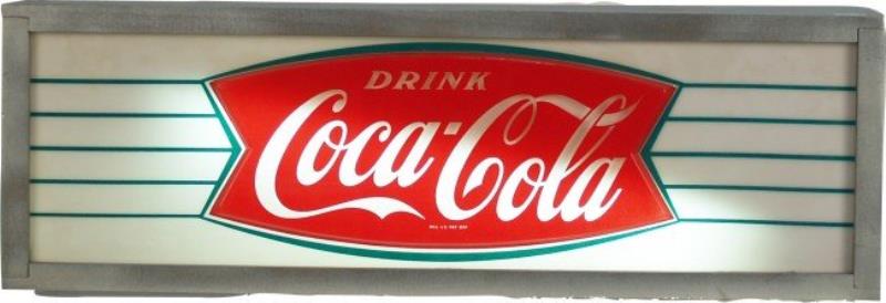Countertop Wood Box & Plastic Light-Up Coca Cola Sign w/ ""fishtail"" symbol - 25"" x 8""