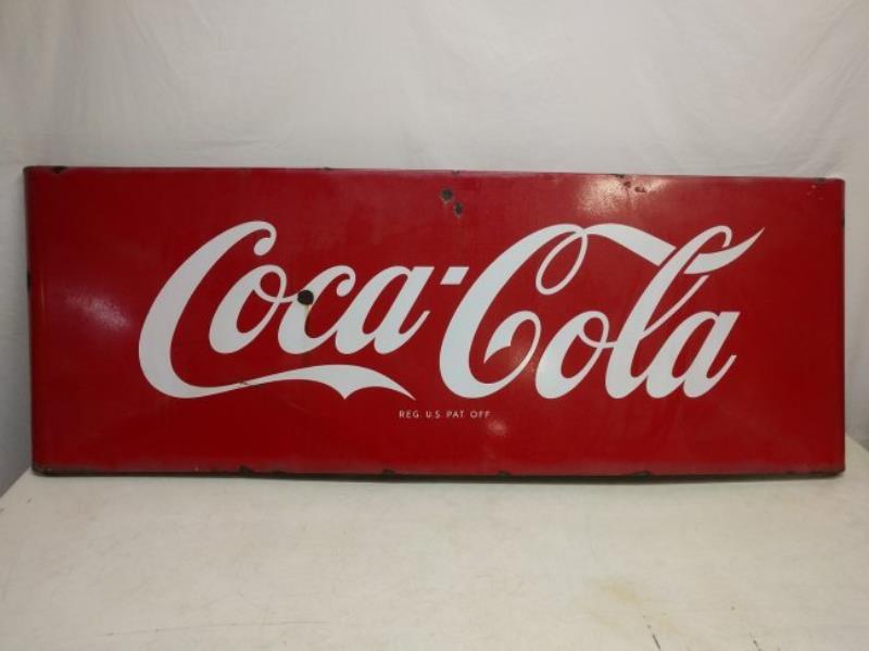 68" x 24" Metal sled sign. Coca Cola has been repainted. The sign shows scuffs, scratches, and rust. Please read and understand the payment and shipping terms for this auction prior to placing bids.