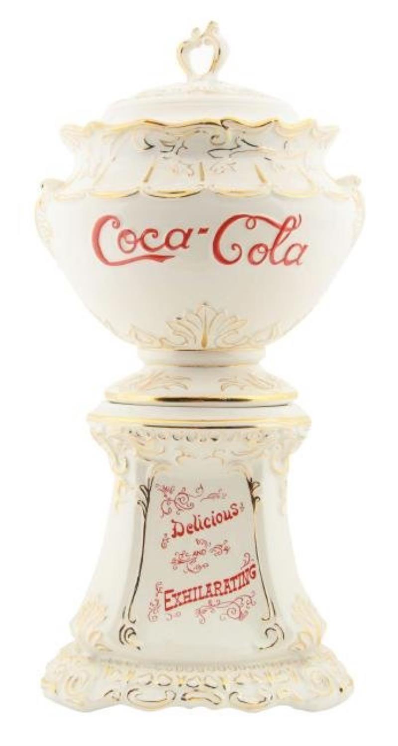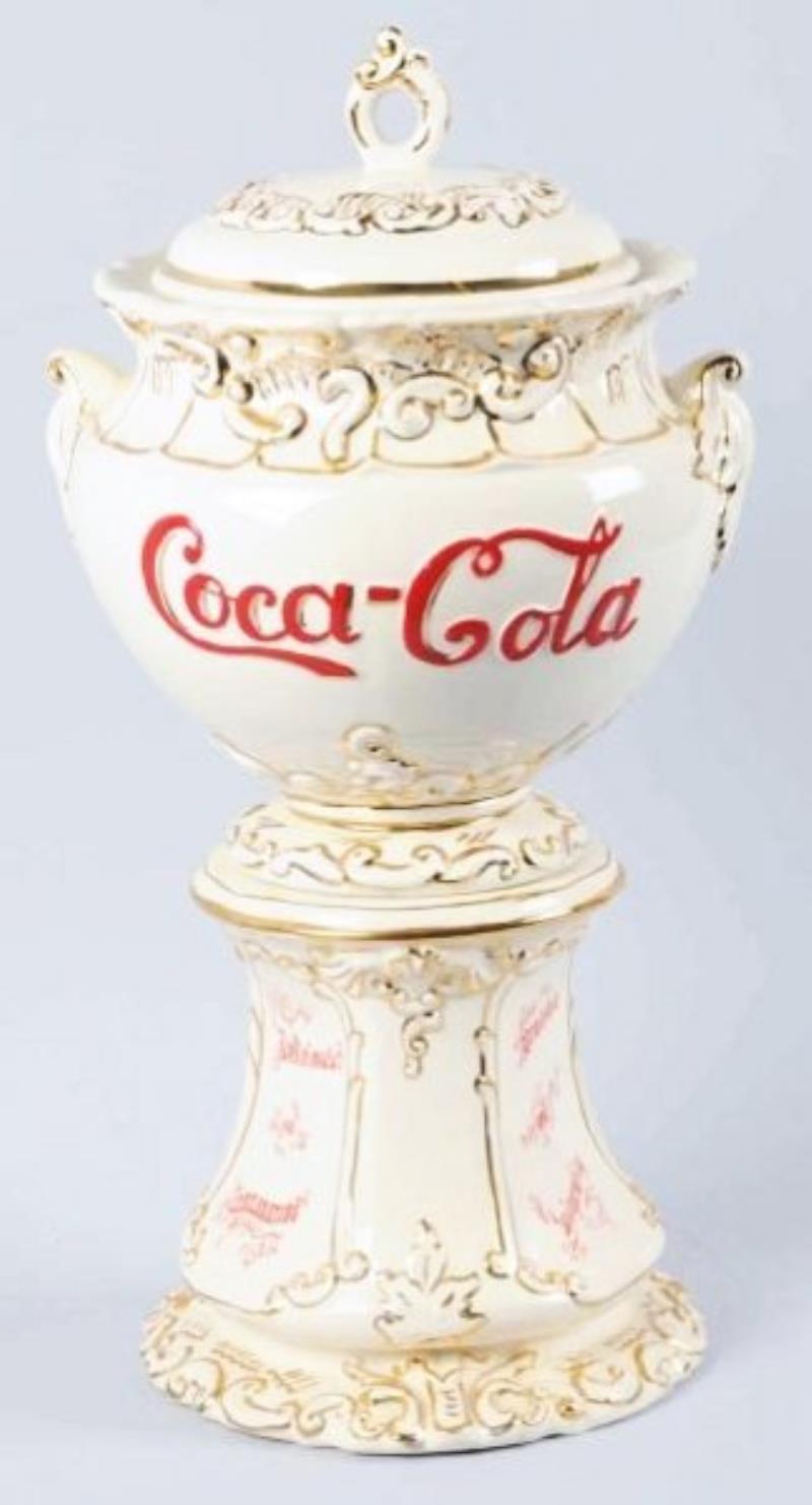 Coca-Cola syrup dispenser, ceramic 2-pc urn, (missing