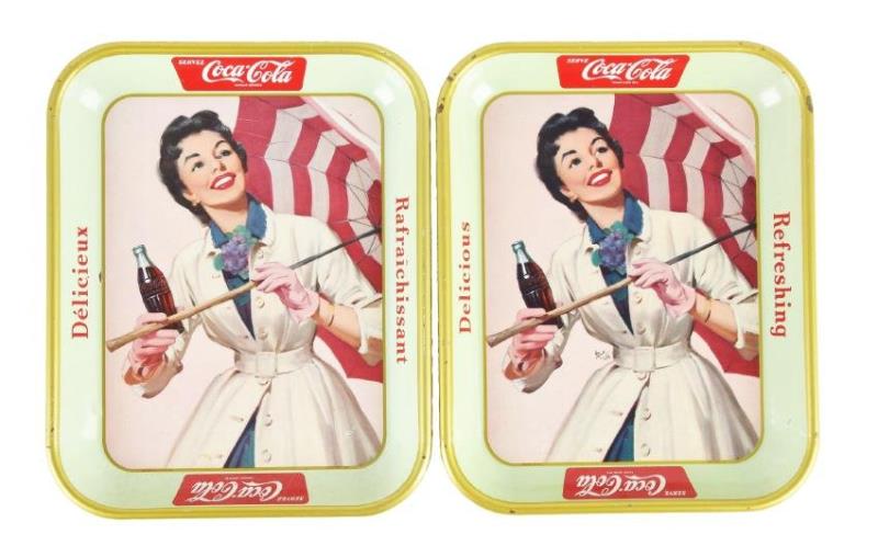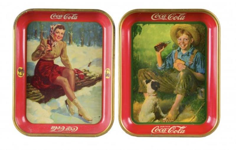 Lot Of 2 Vintage Drink Coca Cola Tin Serving Trays.