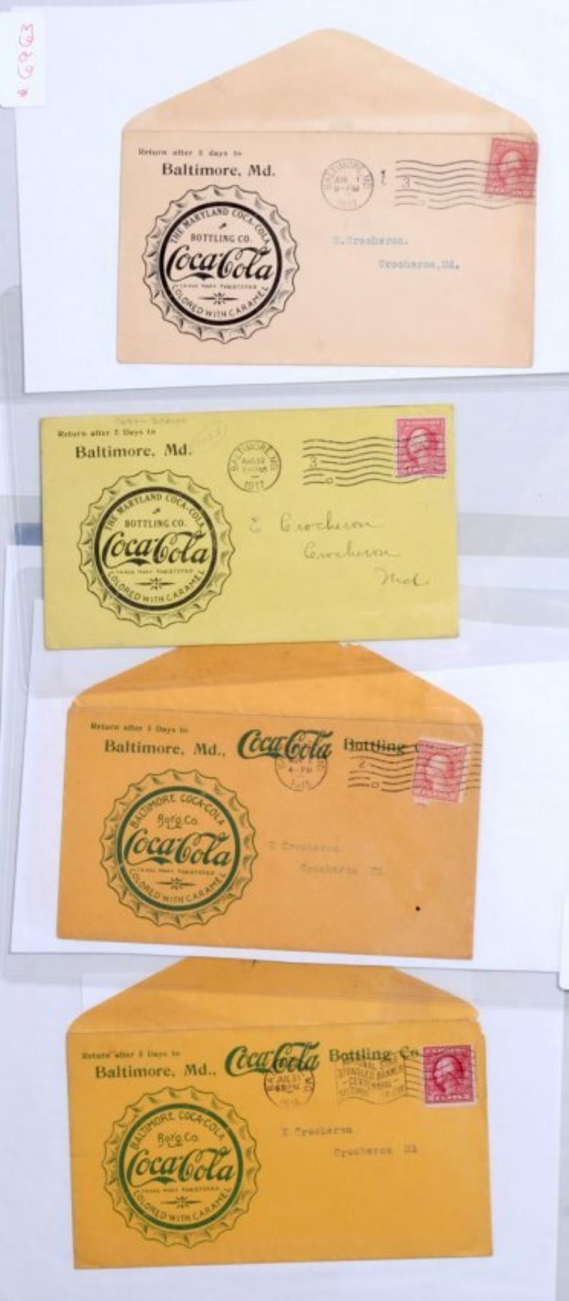 4 BALTIMORE MARYLAND COCA-COLA ENVELOPES