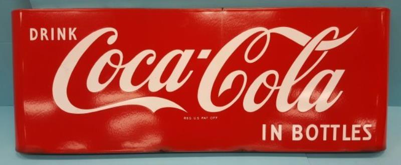 43"x 16" original porcelain "Drink Coca Cola" sled sign. High gloss with minor porcelain chips. PLEASE READ THE PAYMENT & SHIPPING TERMS FOR THIS AUCTION PRIOR TO PLACING BIDS.