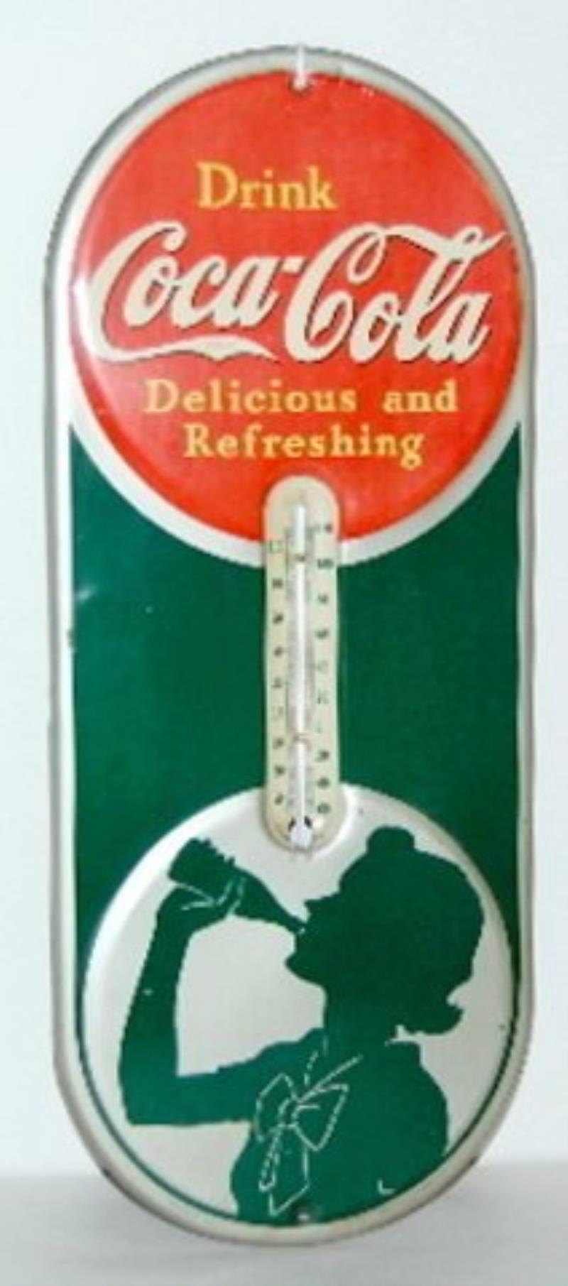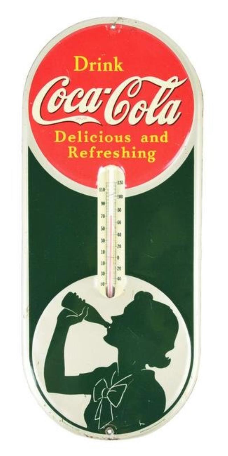 1940 Tin "Drink Coca Cola" Silhouette Thermometer