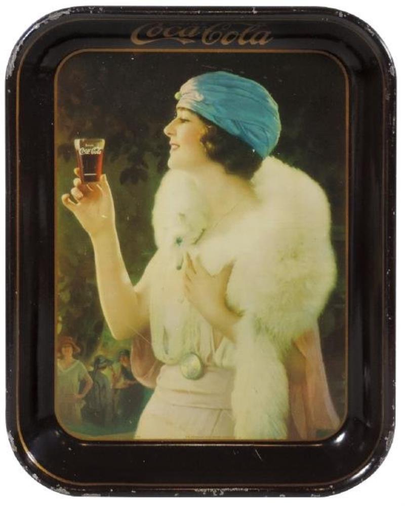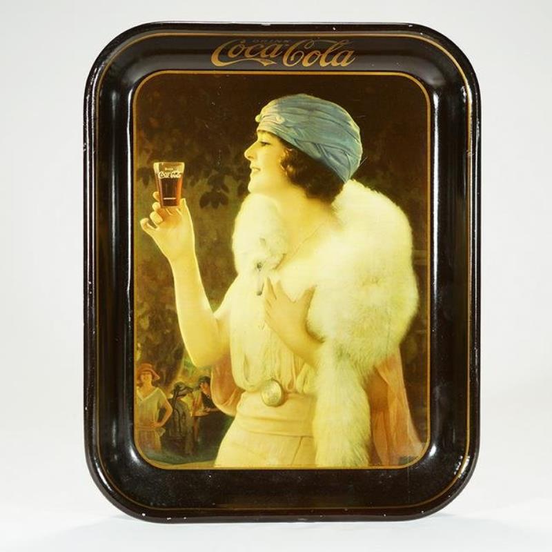 Reference: n/aBrewery: Coca-Cola. Atlanta, GeorgiaManufacturer/Plant: American Art WorksDate of manufacture: ProhibitionCanning Code: n/a Contents/Type: 12 ozCondition/Comments: Wonderful graphic of 1920s era flapper girl admiring a glass of Coca-Cola. She is wearing a mink. Great tray as identified as number 77,…