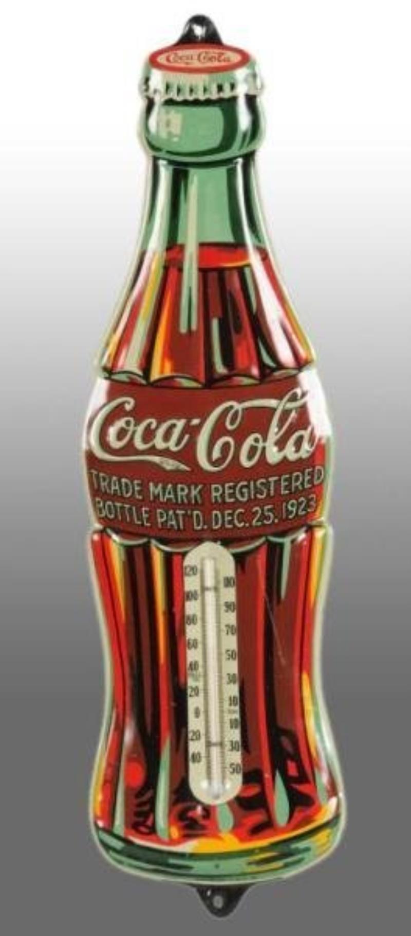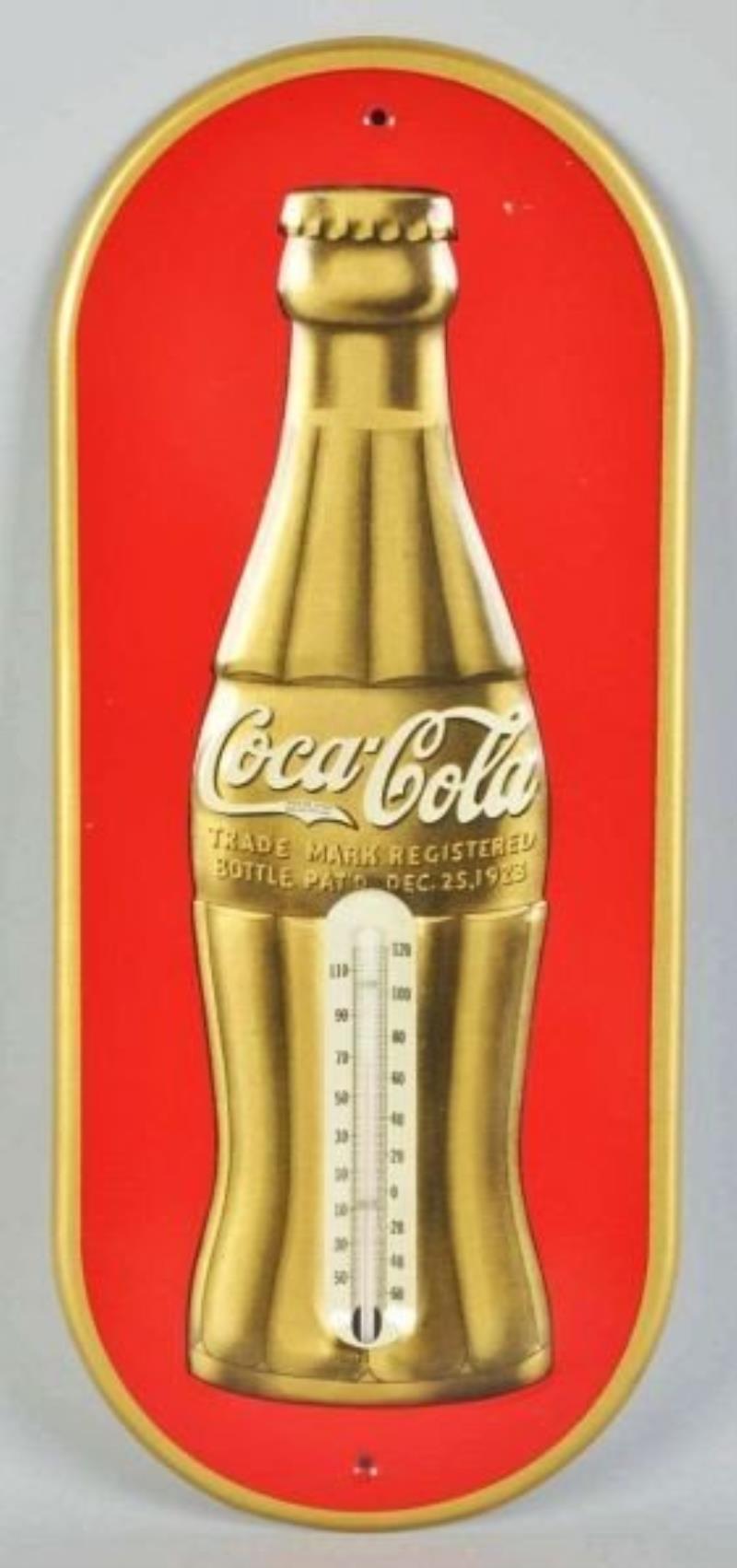 1931 Embossed Tin Coca-Cola Bottle Thermometer.