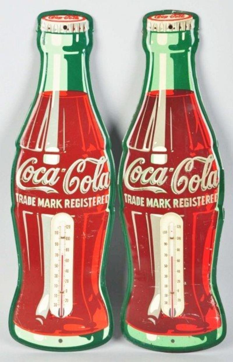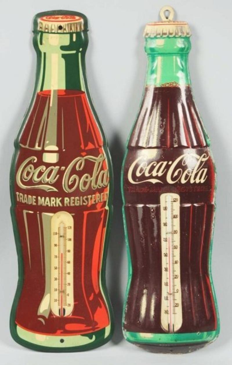 Description 1932 and 1940s. Includes one for Coca-Cola and one for Sun Crest. Only light wear, a few small scratches, and a few nicks to the Coca-Cola thermometer and almost no wear or marks noted on the Sun Crest.Condition (Excellent…