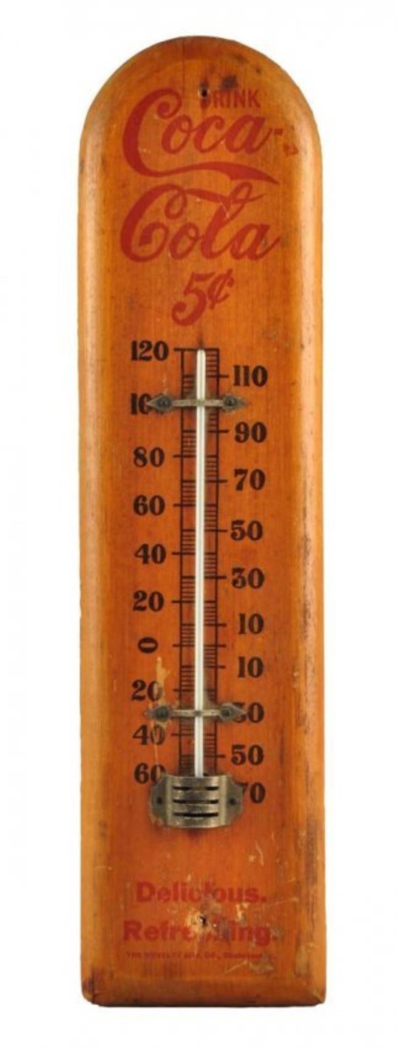 Fresh & Early Wooden Coca-Cola Thermometer.
