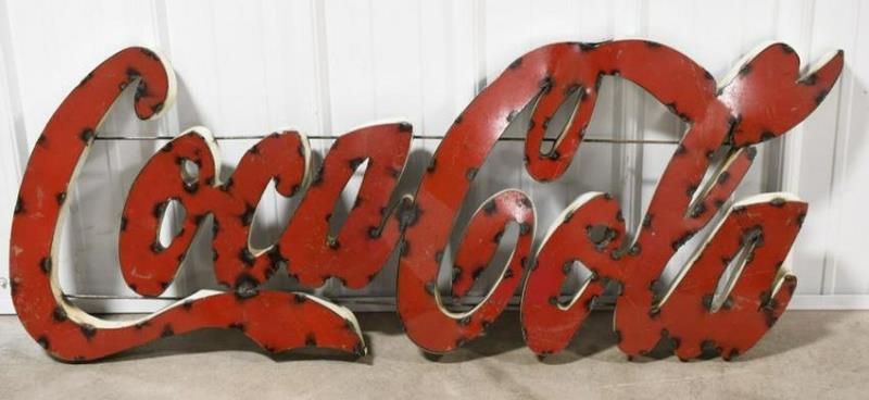 Nice fantasy Coca-Cola script advertising sign. SIgn dispalys well. It measures approximately 46" across by 18" tall. REF#314