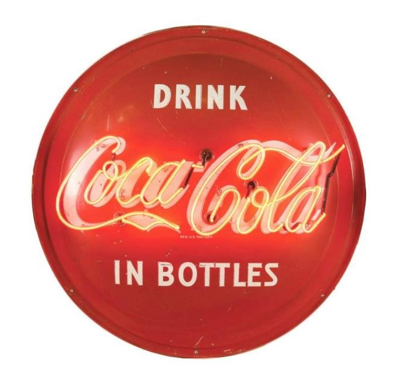SSP. Sign is Maker Marked Tennessee Enamel & Dated 1932. A very nice displaying example of this iconic Porcelain Sign from Coca-Cola. Sign shows added neon throughout the lettering as well as outer edge. Neon is in working condition, except…