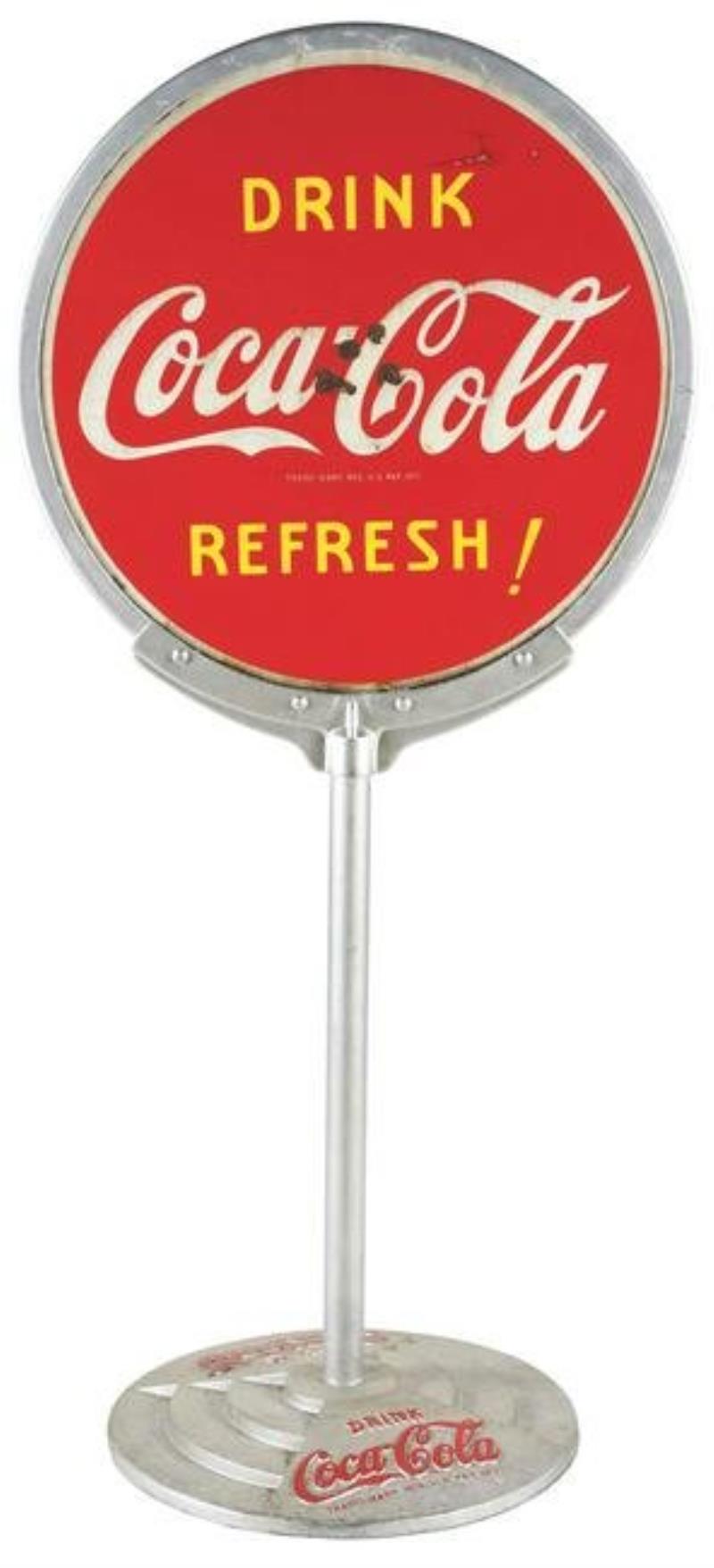 This is an excellent piece of 1930's Coca-Cola advertising. There are areas of scratching with a couple minor holes in the face of the piece. It has a "The Coca-Cola Company 1938", "Niagara Litho Co. Buffalo, New York" maker's mark.…