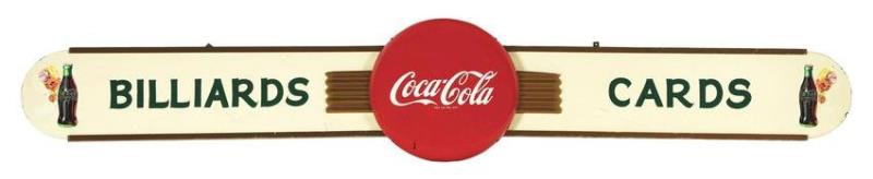 COCA COLA BILLIARDS & CARDS KAY DISPLAY MARQUEE SIGN.